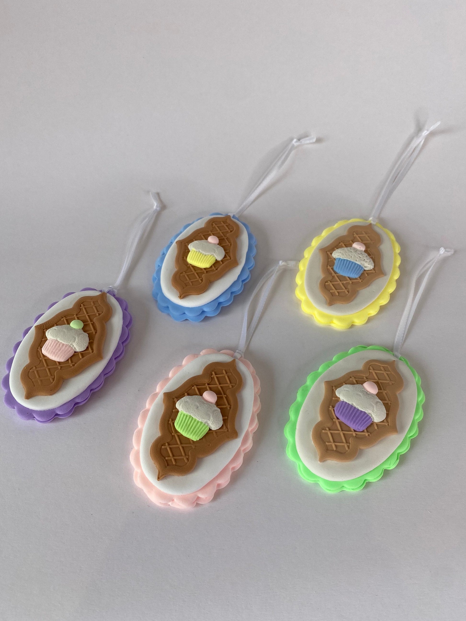 Each cupcake is lovingly handcrafted and available in your choice of five pastel colours: pink, blue, yellow, purple or green. Designed to be light enough for hanging, each one features delicate faux frosting, candy details, and a soft shimmer for that magical holiday sparkle. As they’re made by hand, every ornament is delightfully unique!