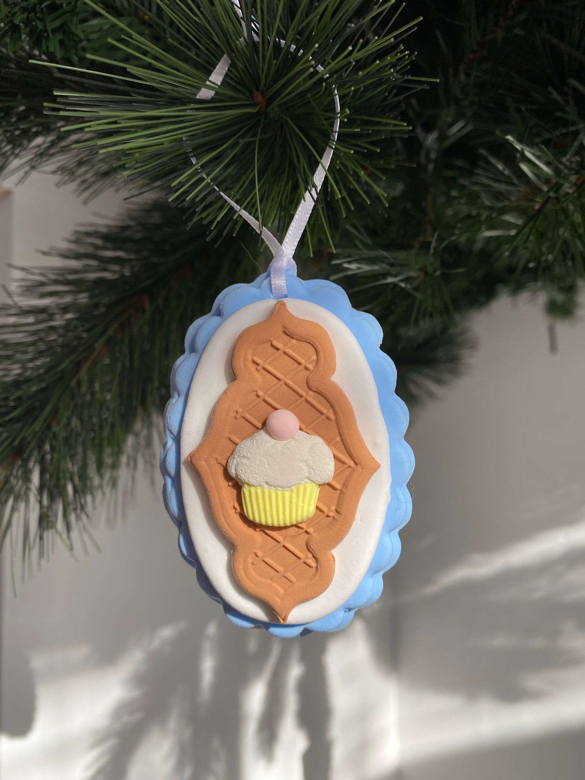 🧁 Handmade Pastel Cupcake Ornament – Candy-Themed Christmas Tree Décor 🎀