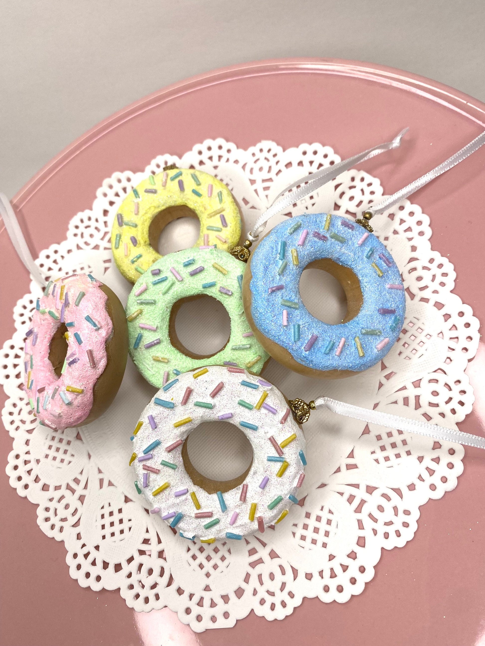 Add a deliciously fun twist to your festive decorating with these hand-painted Donut Ornaments – the perfect sweet treat for candy-themed Christmas trees, wreath attachments, or fake food collections!