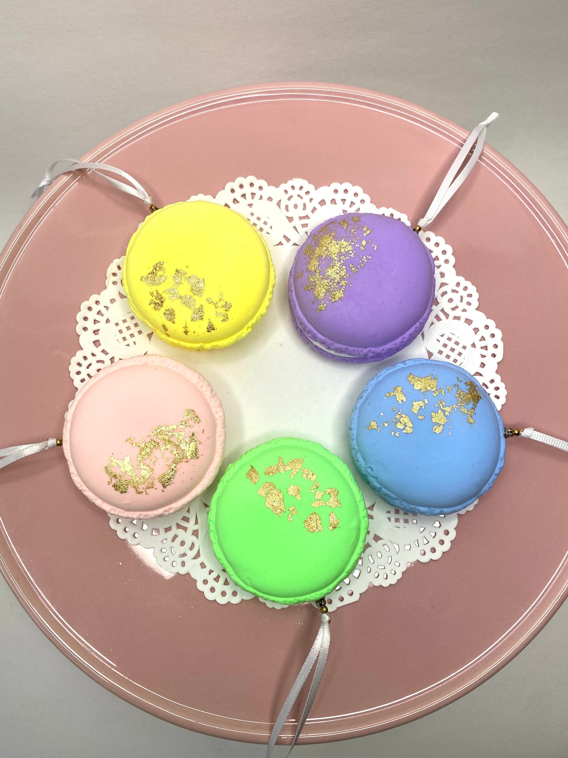Crafted to look like the real deal (without the crumbs!), each macaron is delicately finished in soft pastel tones with a dusting of shimmer and a coordinating hanging ribbon. Whether youβre styling a festive dessert theme or creating an elegant sweet-inspired centrepiece, this little treat fits right in.