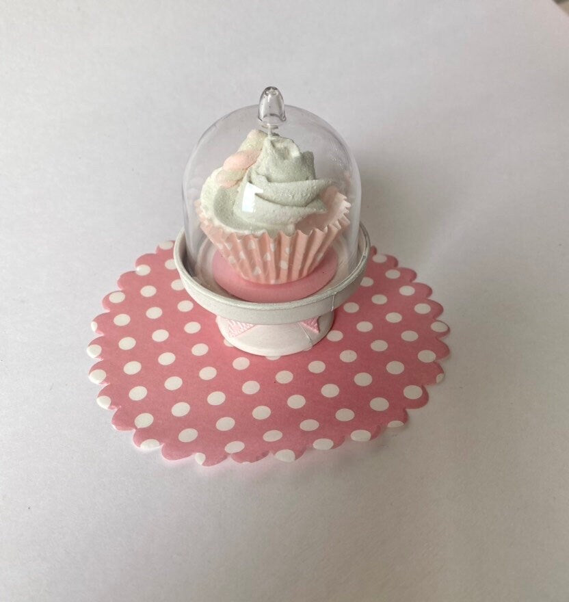 π§π Mini Faux Cupcake in Dome β Shabby Chic Tiered Tray or Ornament | Handmade in Australia