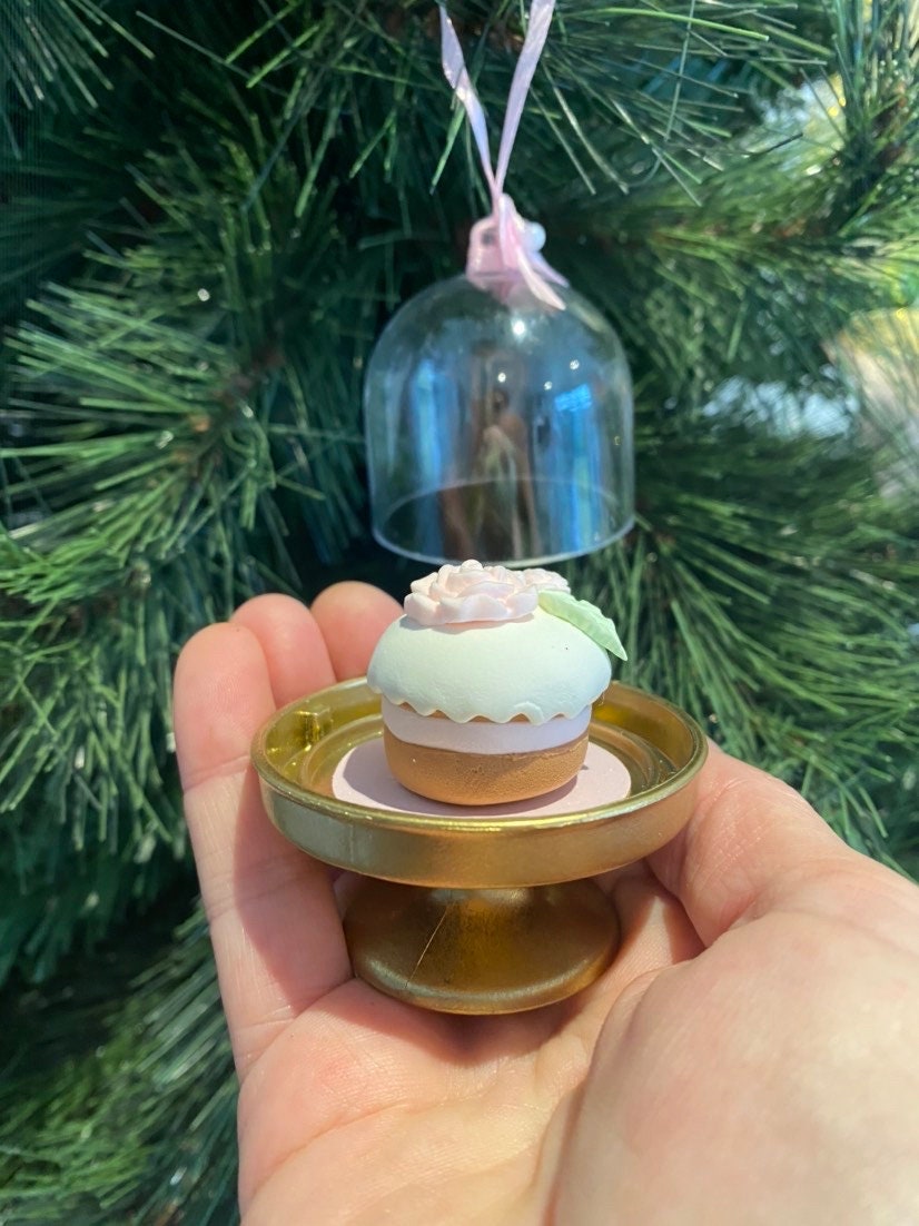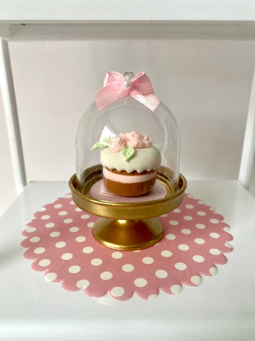 ππ° Shabby Chic Mini Cake Ornament β Handmade Faux Bake | Pink Rose Dome Display or Hanging Decor